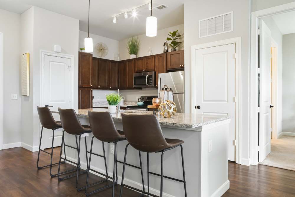 As you explore our photo gallery, picture your life in one of our modern and luxurious Overland Park, Kansas, apartment homes. Imagine waking up with natural light filtering through your window, followed by a gourmet breakfast crafted in your spacious chef-inspired kitchen. After you’ve eaten, indulge in a refreshing dip in our resort-style saltwater pool, then relax with a good book under the cabana. In the evenings, entertain friends with dinner in the outdoor barbecue area before retiring to the clubhouse for cocktails and conversation. It doesn’t get much better than this.